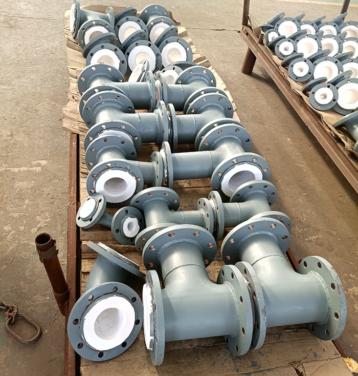 內(nèi)襯四氟管道管件是以普通碳素鋼管作為基體,內(nèi)襯化學(xué)穩(wěn)定性優(yōu)良的熱塑性聚四氟乙烯(英文縮寫為Teflon或[PTFE,F4])塑料,經(jīng)特定的工藝加工而成。它既有鋼管的機械性能,又有四氟塑料的耐強酸強堿腐蝕,耐高溫,不易生長微生物等特點,是輸送強酸、強堿、工業(yè)鹽及有強烈腐蝕性氣體等介質(zhì)的理想管道。